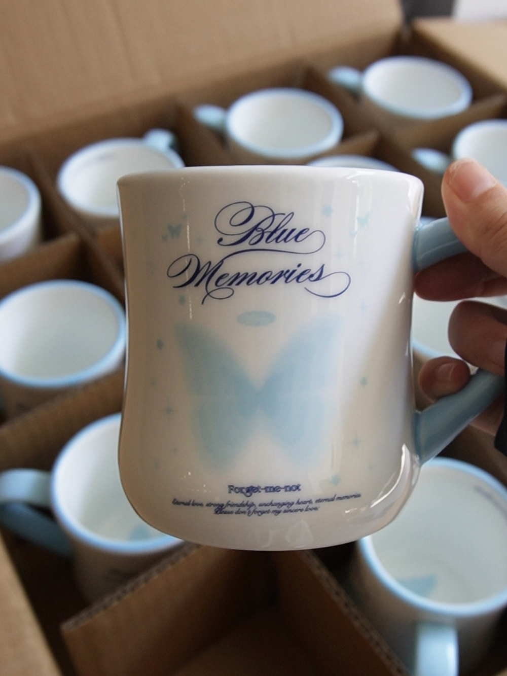 客户找到91视频最新网站,想要定制一批关于蝴蝶印花的马克杯,经过不断设计调整,最终选定,客户很满意!下面是产品的大货图: